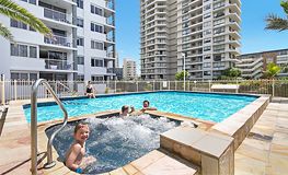 You’ll also be happy to know that the Kurrawa Park directly in front of the Sandpiper beachfront apartments is also home to the Kurrawa Surf Club. The beach in front of the apartments is surf patrolled 365 days a year. As long as you and your family swim between the flags, your safety is assured. The Kurrawa Surf Club also has a delightful restaurant and bar with a balcony that overlooks the Pacific Ocean. It’s just the perfect way to relax after a day at the theme parks or giving your credit cards a workout shopping at the malls. Or relax by the pool, or in the accompanying spa.